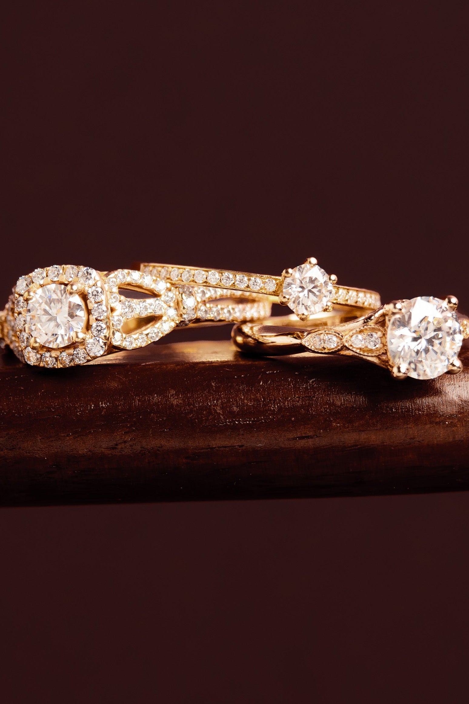 Trabalhamos com todo tipo de gema disponível atualmente no mercado (exceto zircônia). Em coleções específicas, utilizamos diamantes naturais, diamantes de laboratório, moissanite e outras gemas como safiras, rubis, esmeraldas e similares.