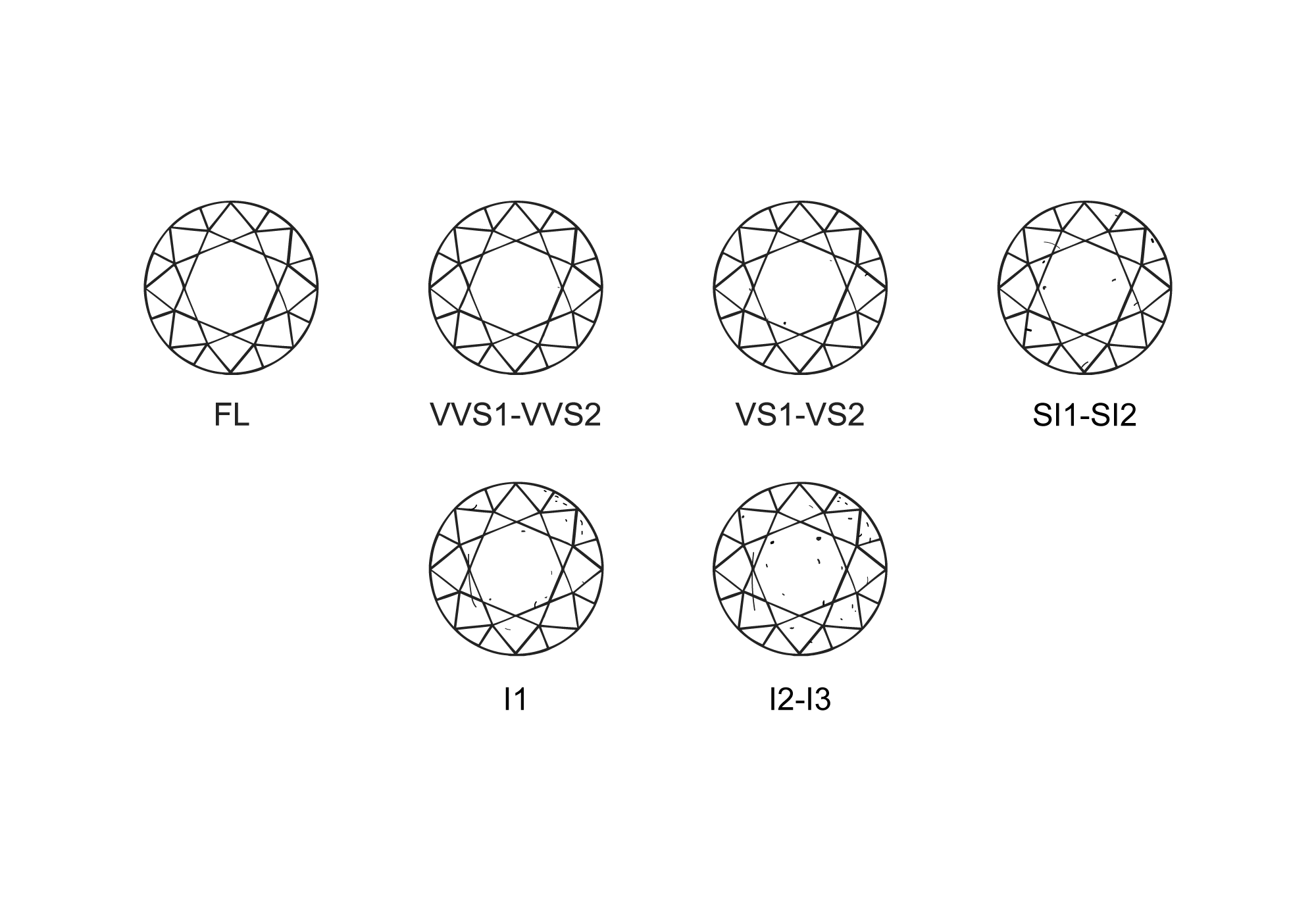 A escala da GIA possui 11 graus, do Flawless (FL) até Included (I).