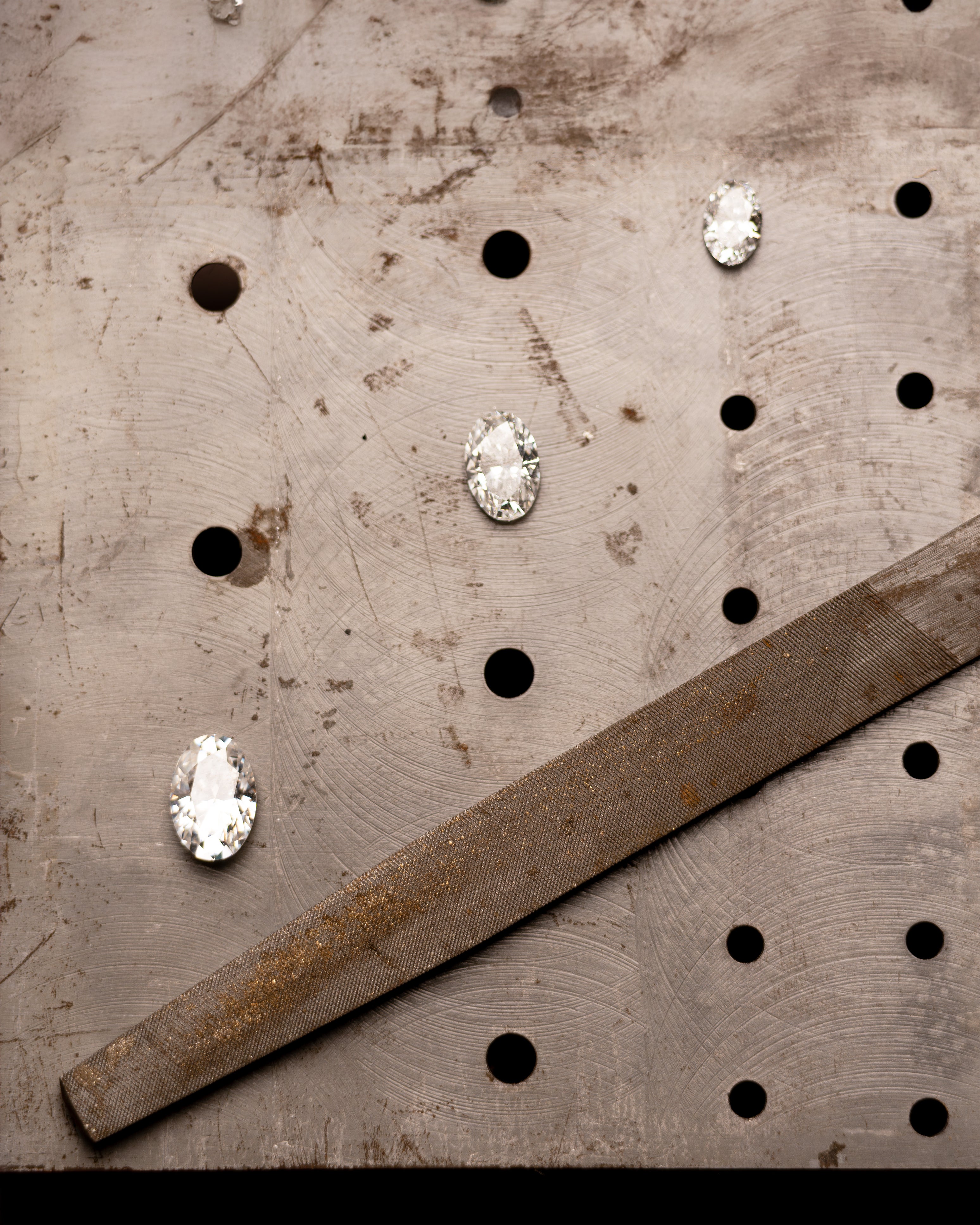 Na Vangolden usamos diamantes naturais com clareza VS+ e diamantes de laboratório com clareza VVS+.