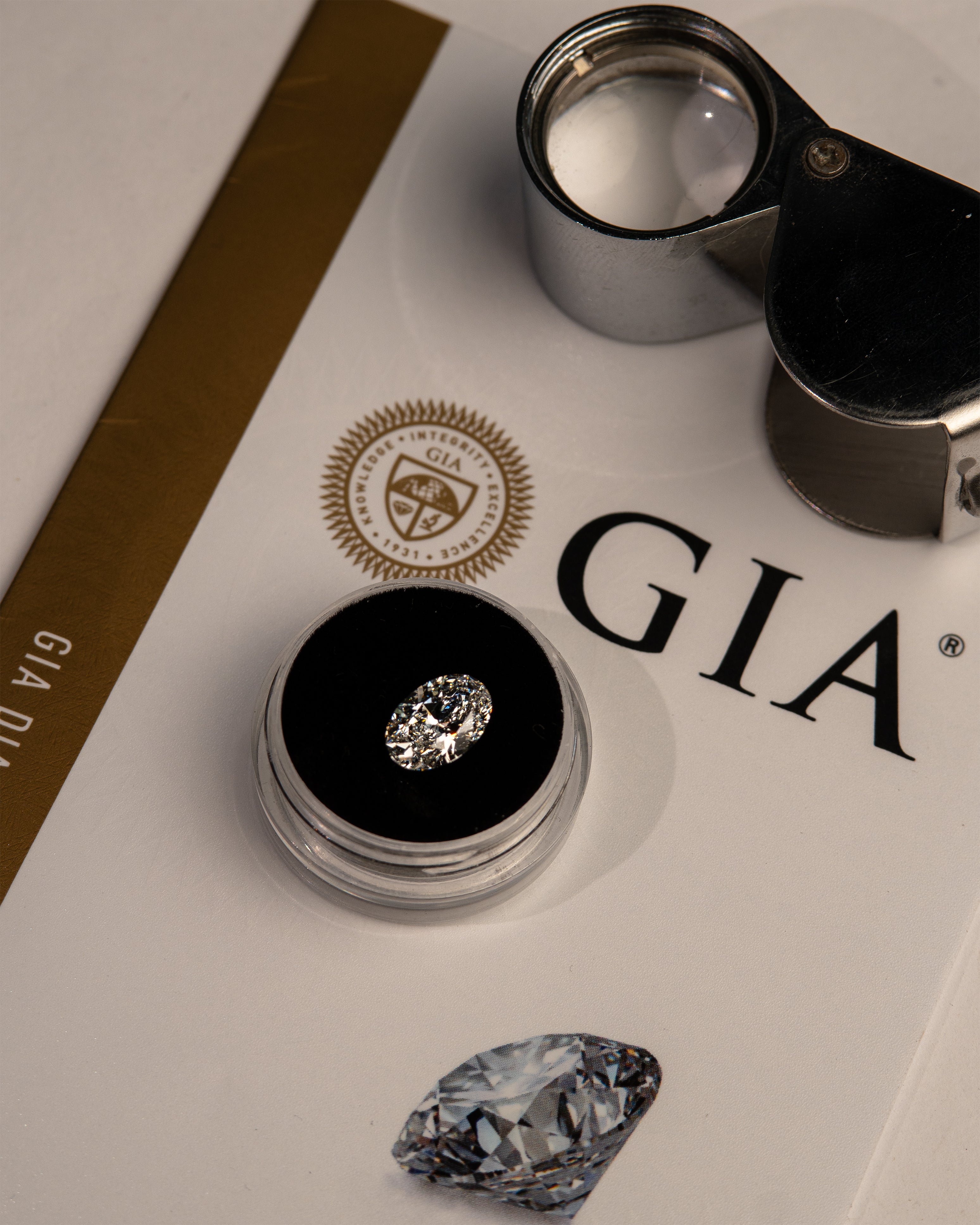 Para diamantes naturais, GIA e IGI emitem relatórios com as características do diamante (incluindo os 4Cs e medidas).